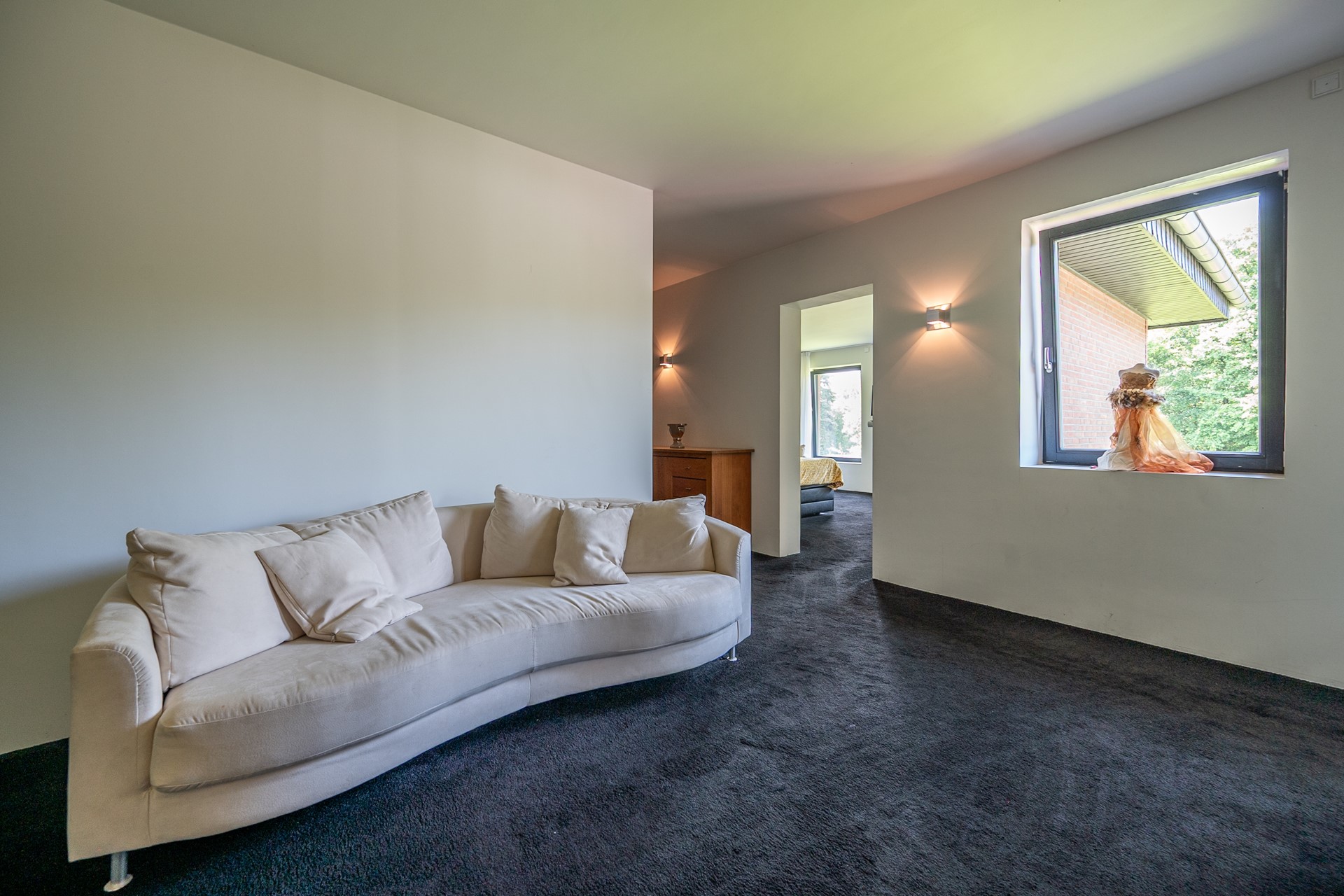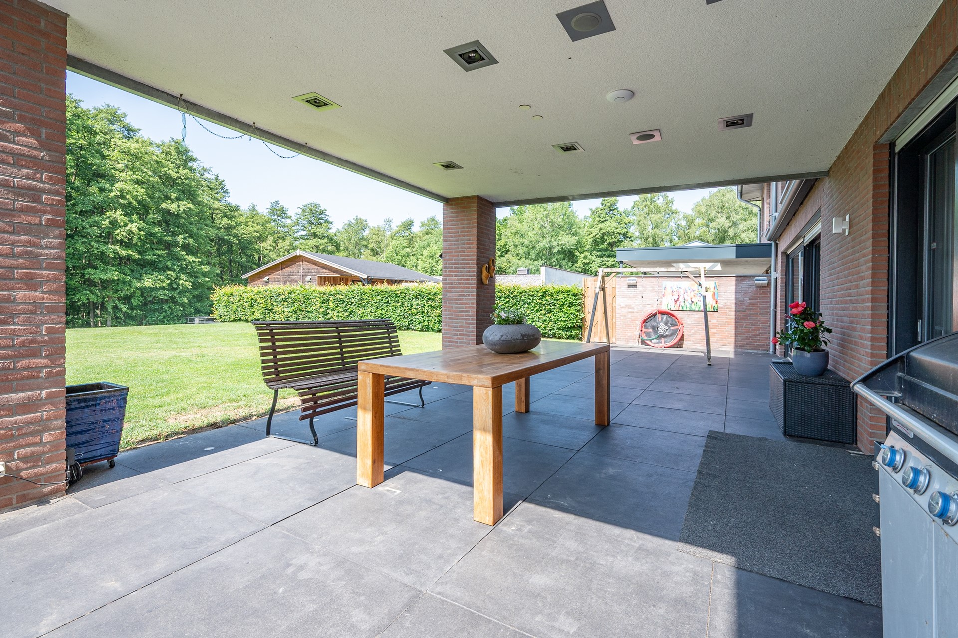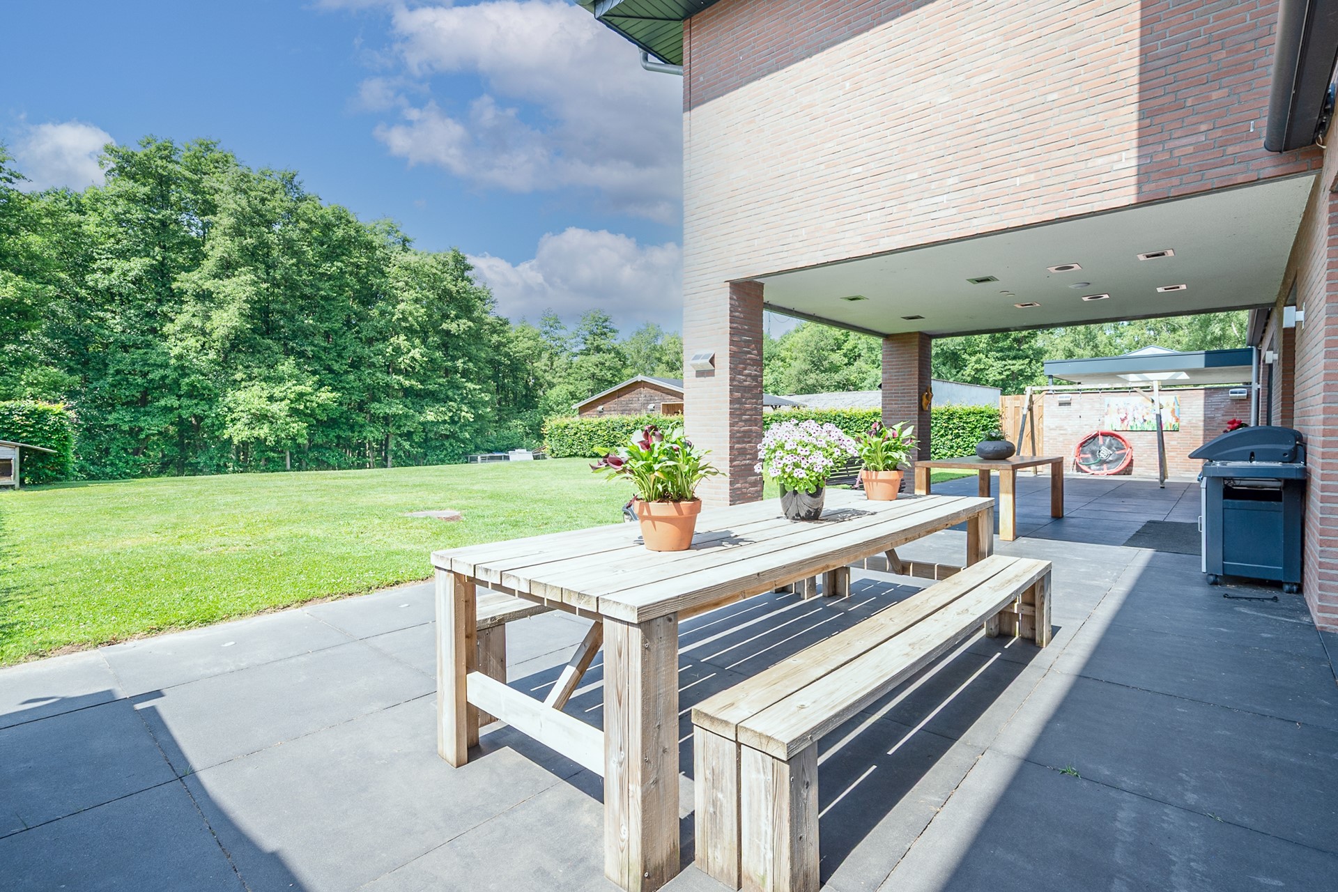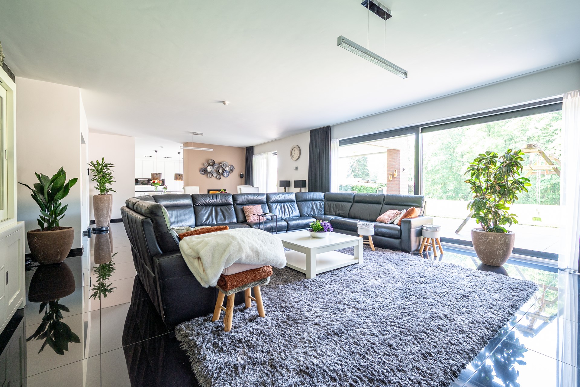 De tuin is een waar hoogtepunt van dit pand: een groot terras met zonnescherm, een uitgestrekt gazon dat zacht afloopt richting het bos en de directe nabijheid van de natuur creëren, een unieke sfeer in alle jaargetijden.