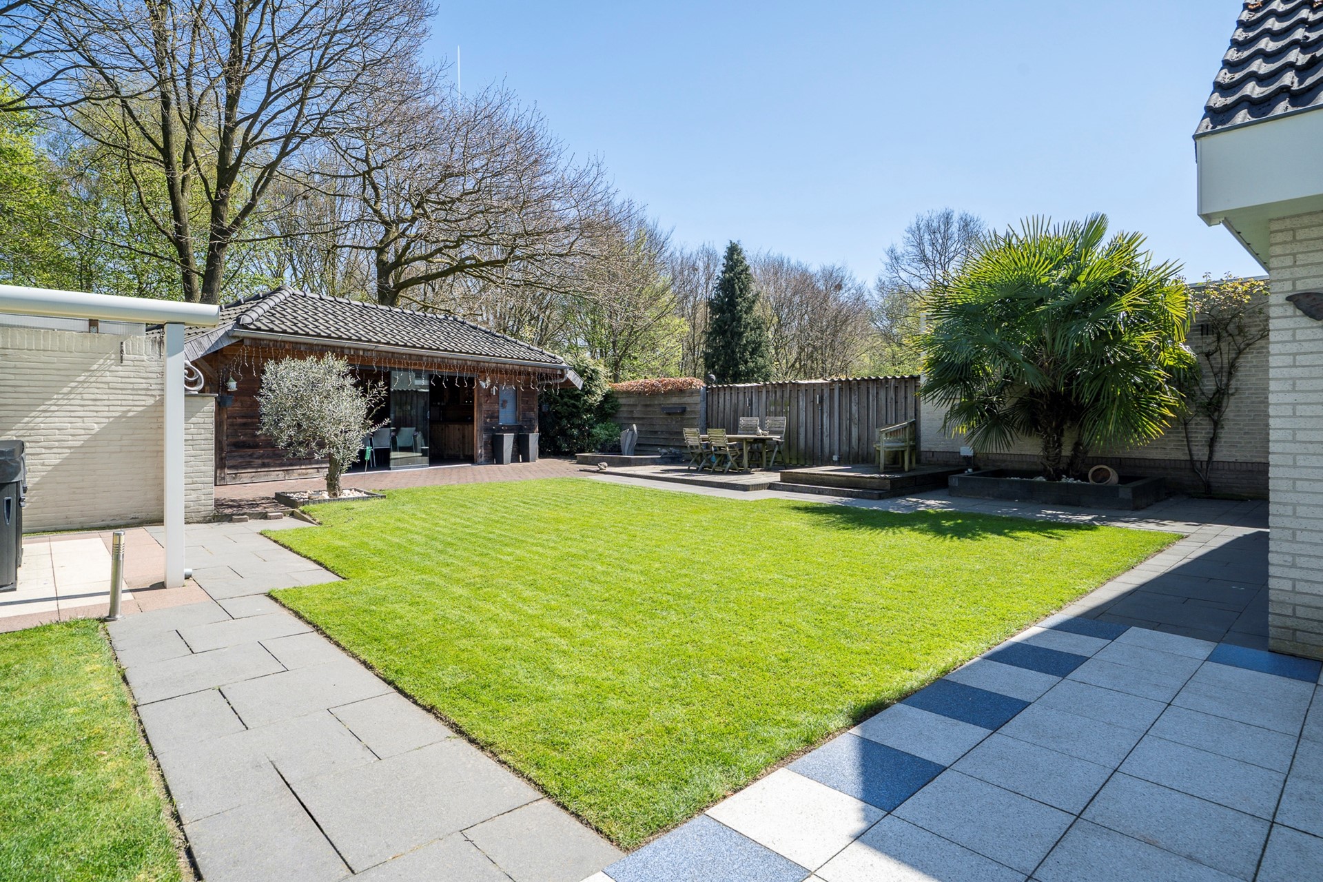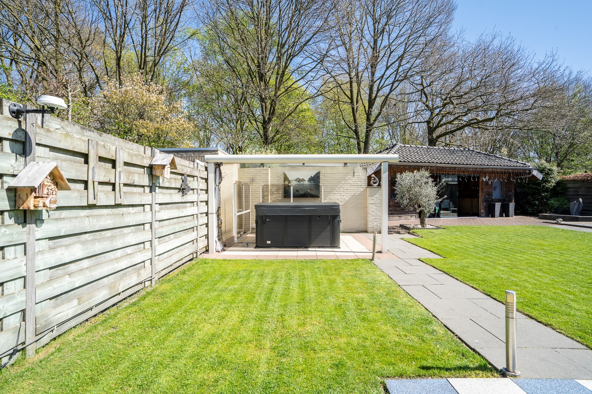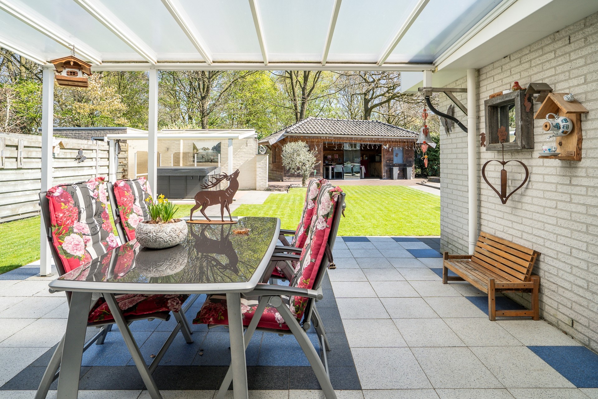 De achtertuin is met recht een eyecatcher. De huidige eigenaar heeft extra bosgrond aangekocht, wat zorgt voor een unieke, groene setting.