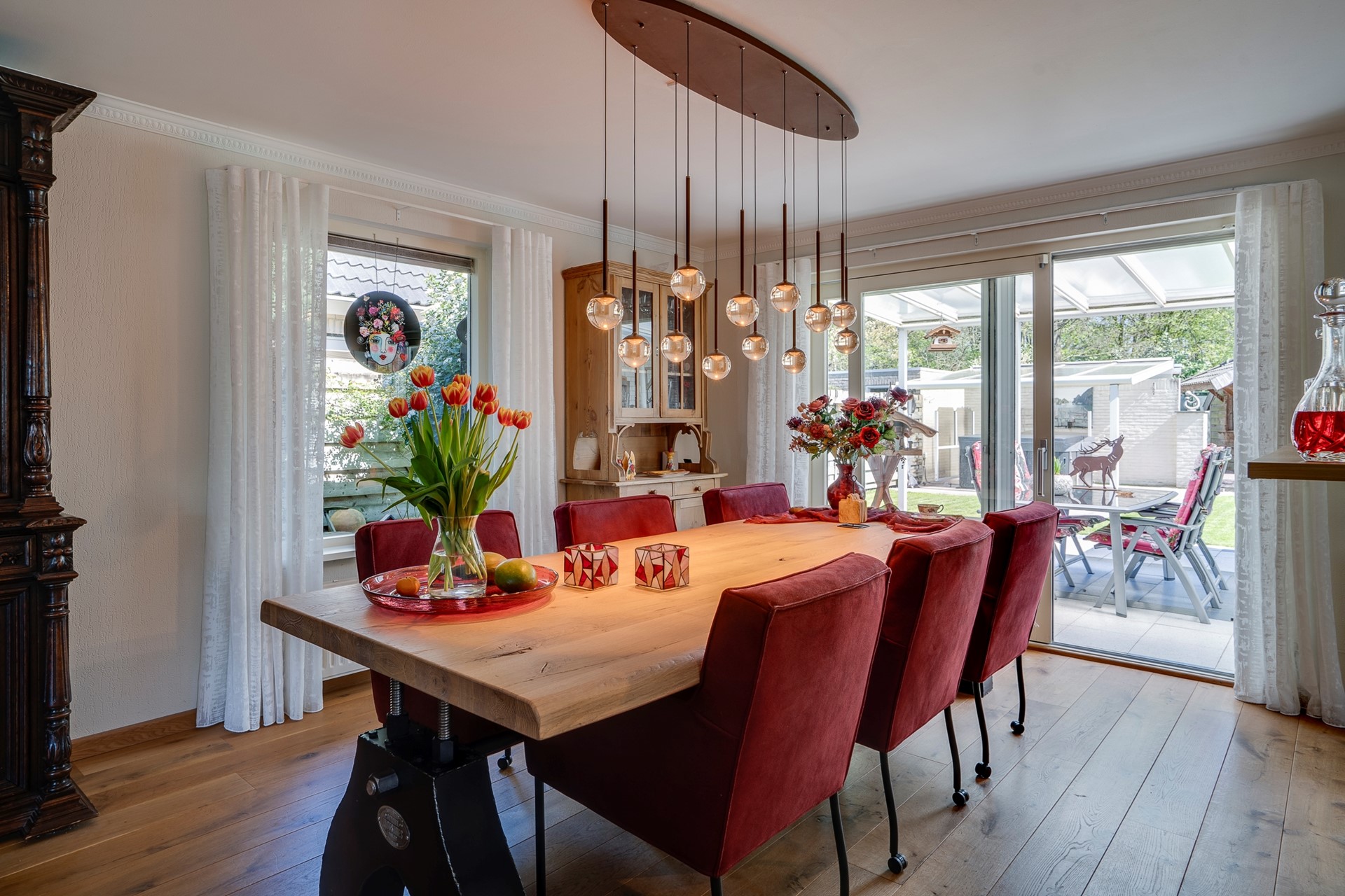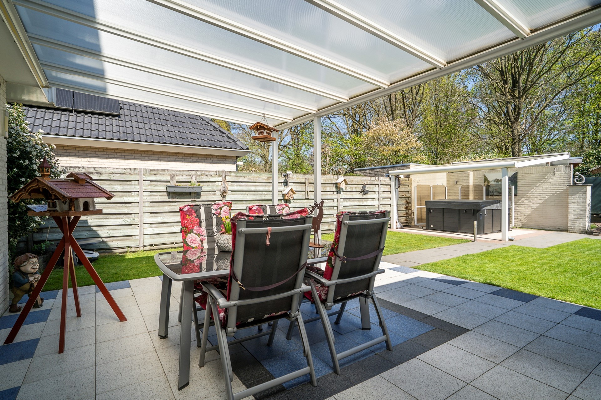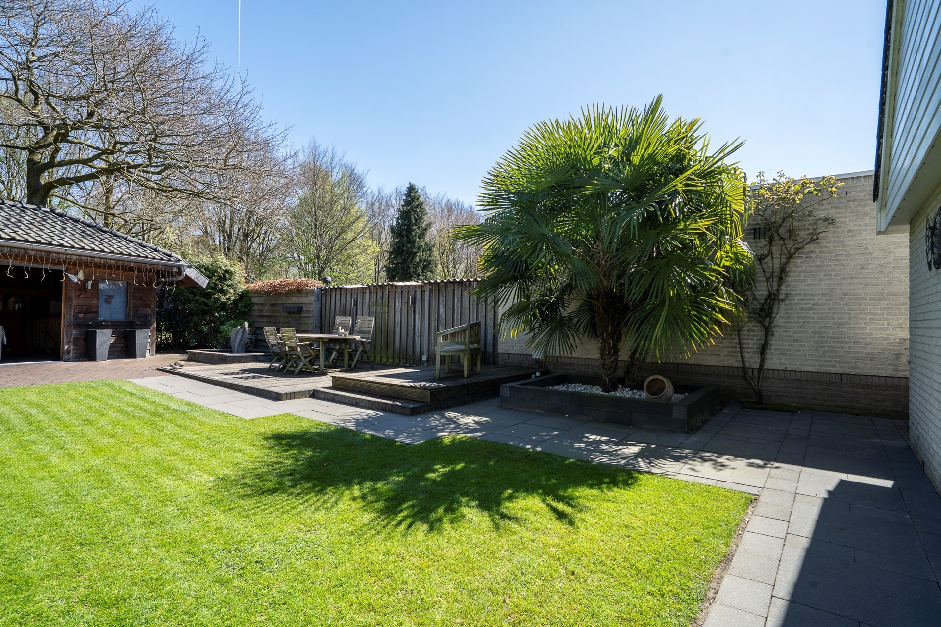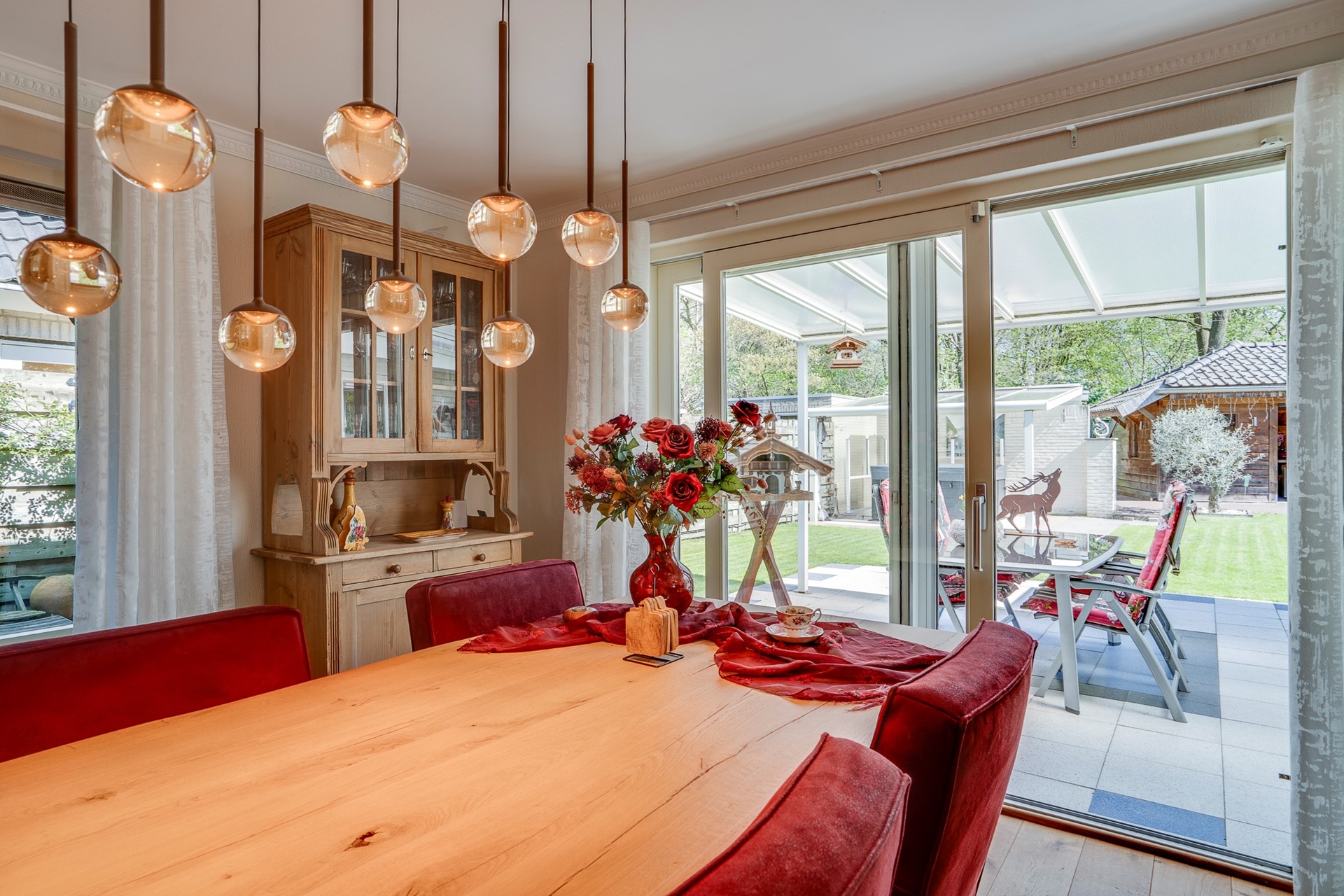 De achtertuin is met recht een eyecatcher. De huidige eigenaar heeft extra bosgrond aangekocht, wat zorgt voor een unieke, groene setting.