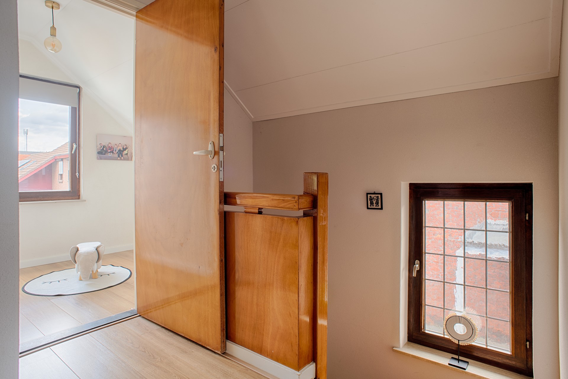 Begane grond Entree met fraaie tegelvloer, meterkast en een stijlvolle trapopgang. De lichte doorzonwoonkamer met erker en openslaande tuindeuren staat in verbinding met de gesloten eetkeuken via prachtige glazen binnendeuren. De keuken is ingericht in hoekopstelling met kookplaat en afzuigkap. Aansluitend vindt u de moderne bijkeuken met vloerverwarming, keukenblok, close-in boiler, witgoedaansluitingen en een vernieuwde cv-installatie (2025). Ook de toiletruimte is hier gesitueerd. Vanuit de bijkeuken is er toegang tot de tuin met terras en berging.