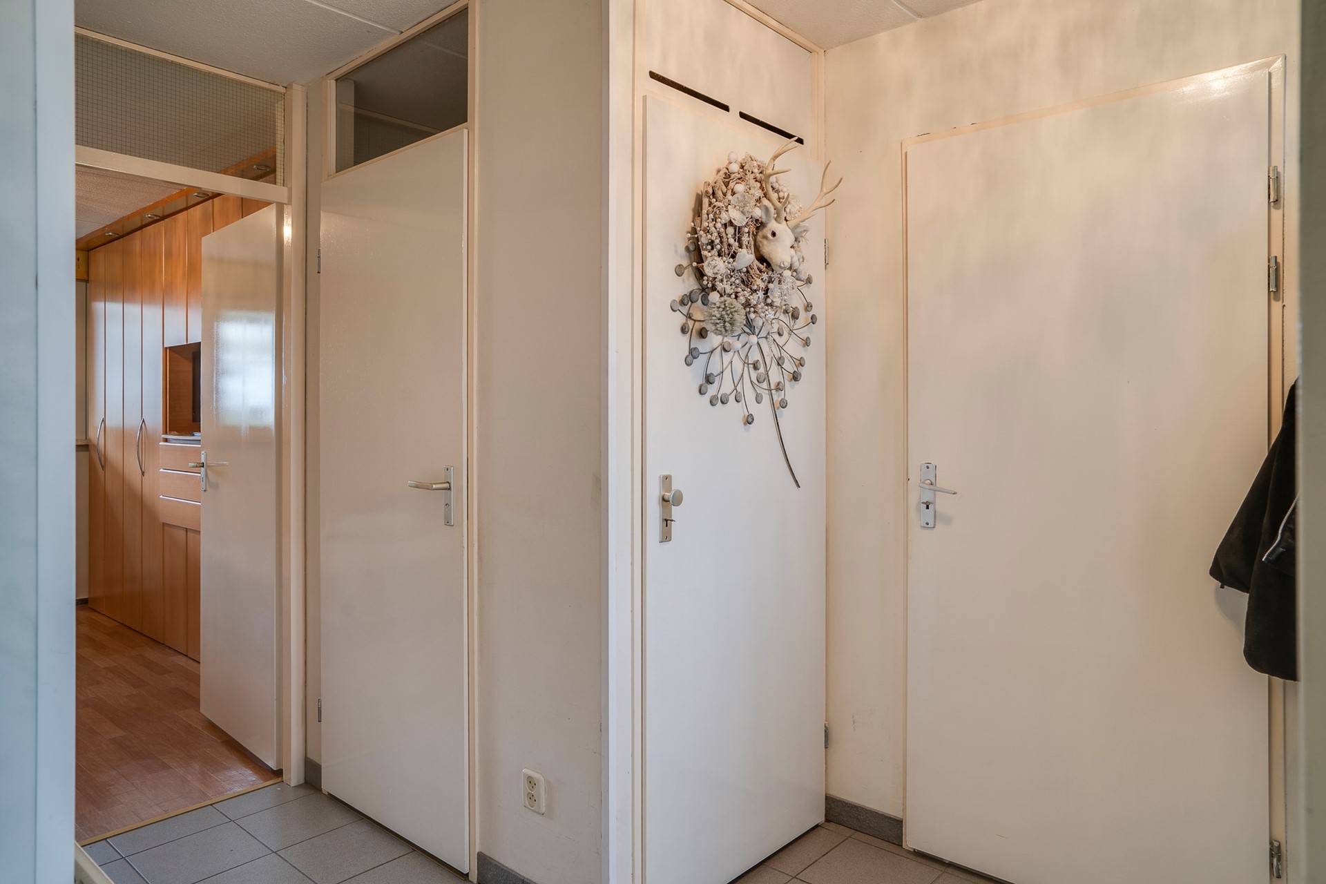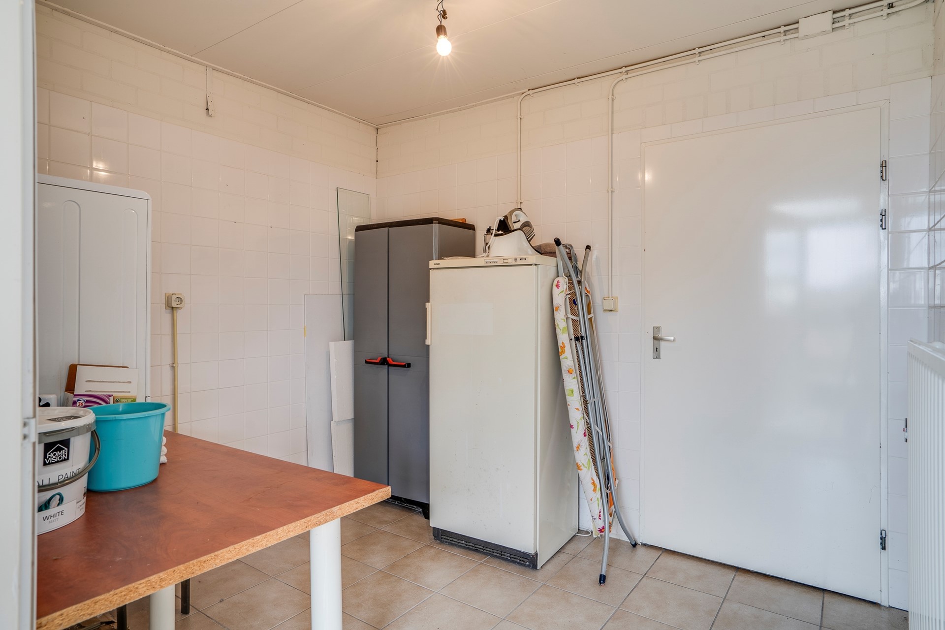Vanuit de hal zijn tevens de garage en de praktische wasruimte met witgoedaansluiting bereikbaar.